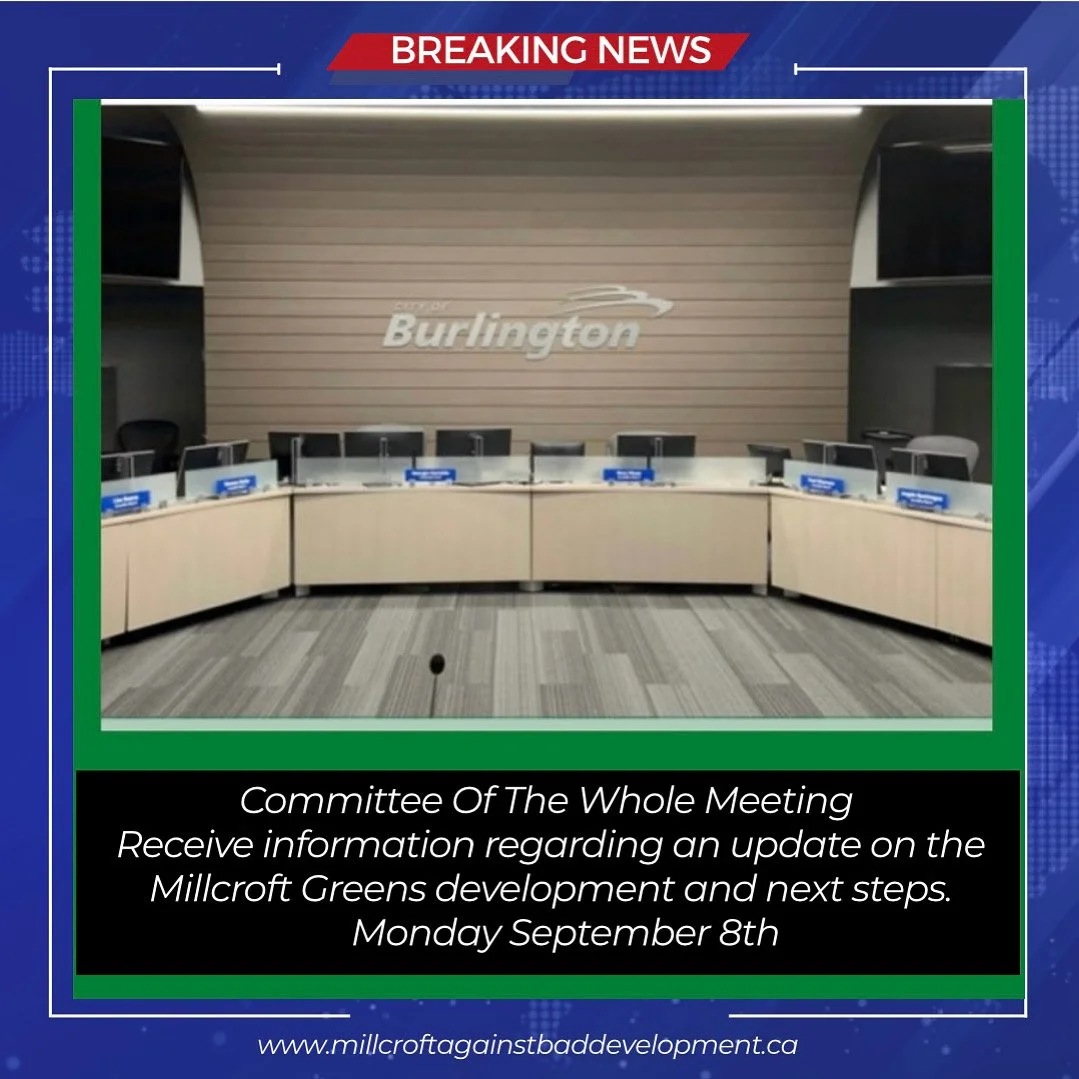 The Millcroft Greens proposal will be discussed at the Committee of the Whole meeting on Monday September 8th.